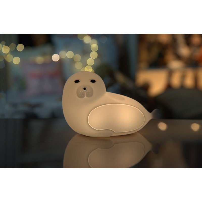 Miękka, silikonowa lampka przedstawiająca fokę. Uroczy stwór wodny rozświetli pokój, pomoże przy przewijaniu maluchów