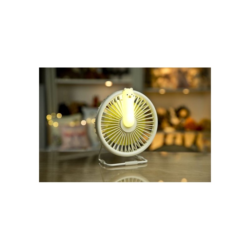 Regulacja przepływu powietrza umożliwia dostosowanie do potrzeb indywidualnych prędkość: niską, średnią i wysoką. Umieszczony z tyłu lampki, funkcjonalny panel sterowania, jest łatwy w użyciu. Wentylator po pełnym naładowaniu działa około 3 godzin bez podłączania do źródła zasilania. Urządzenie ładowane jest za pomocą kabla micro USB.