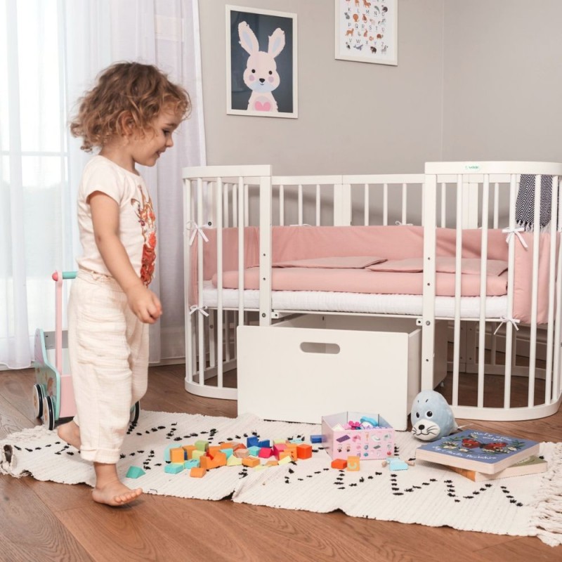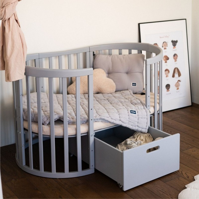 Szuflada na kółkach do łóżeczka 7w1 odpowiednia do łóżeczka klasycznego jak i owalnego.