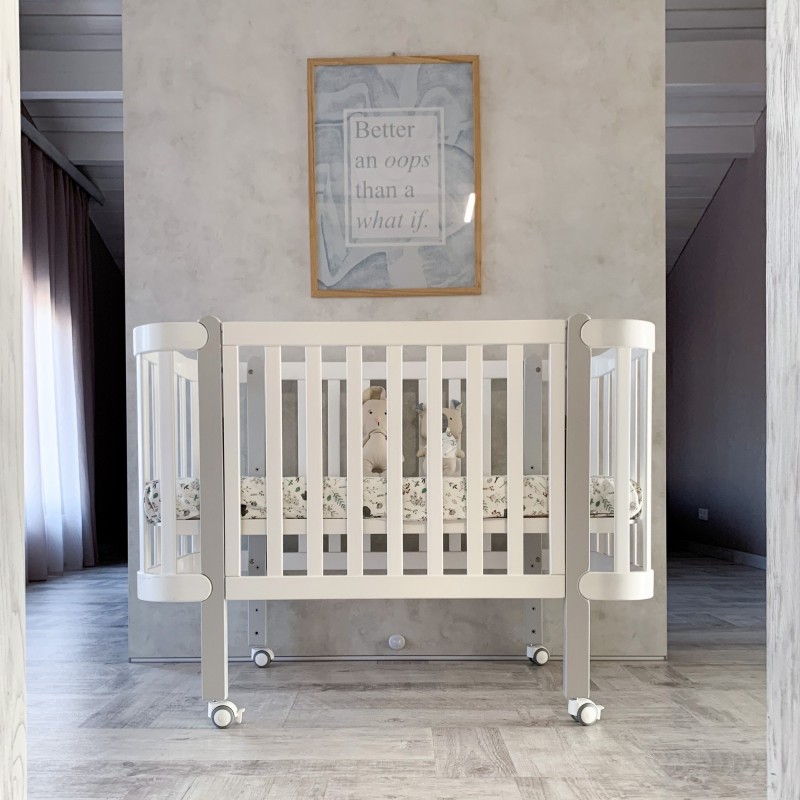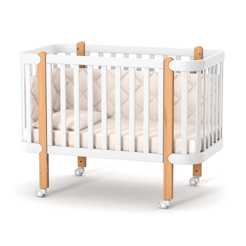 Dostępne kolory: Kółka dostępne są w kolorze białym, co pozwala dopasować je do różnych wzorów i stylów łóżeczka.